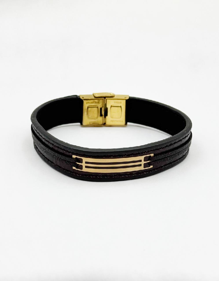دستبند چرم و طلا مردانه 037